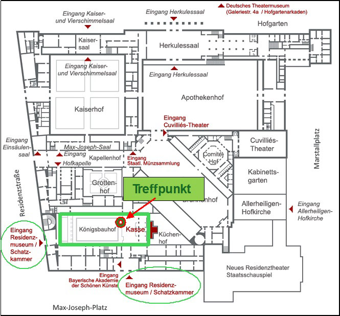 - Treffpunkt: 13:45 Uhr im Königsbauhof vor dem Eingang zum Residenzmuseum (vgl. Plan)